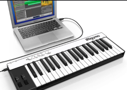 This is what I was thinking as the logo. Like a black background with a gold outline of a computer and midi keyboard.